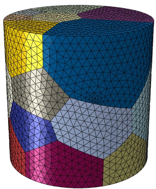 Fig. 49 Example of meshed Abaqus cylinder geometry generated from grain growth tesselation results from Neper