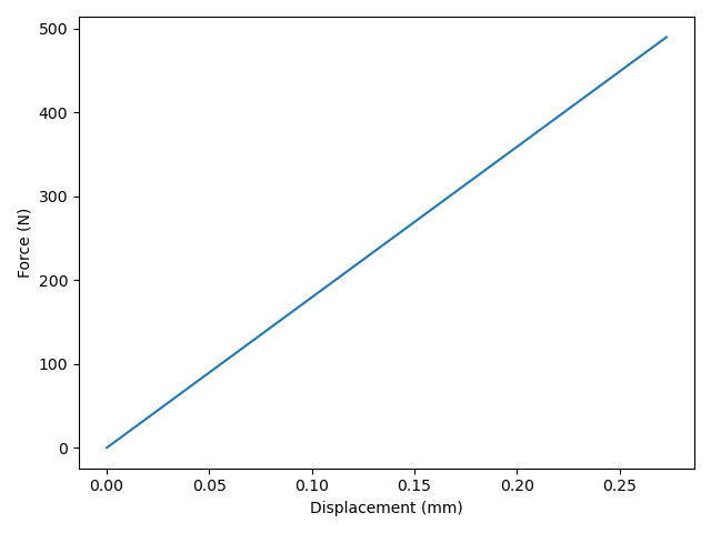 The following figure shows the resultant force versus displacement for the top of the cylinder, with a total force of 489.9 N.