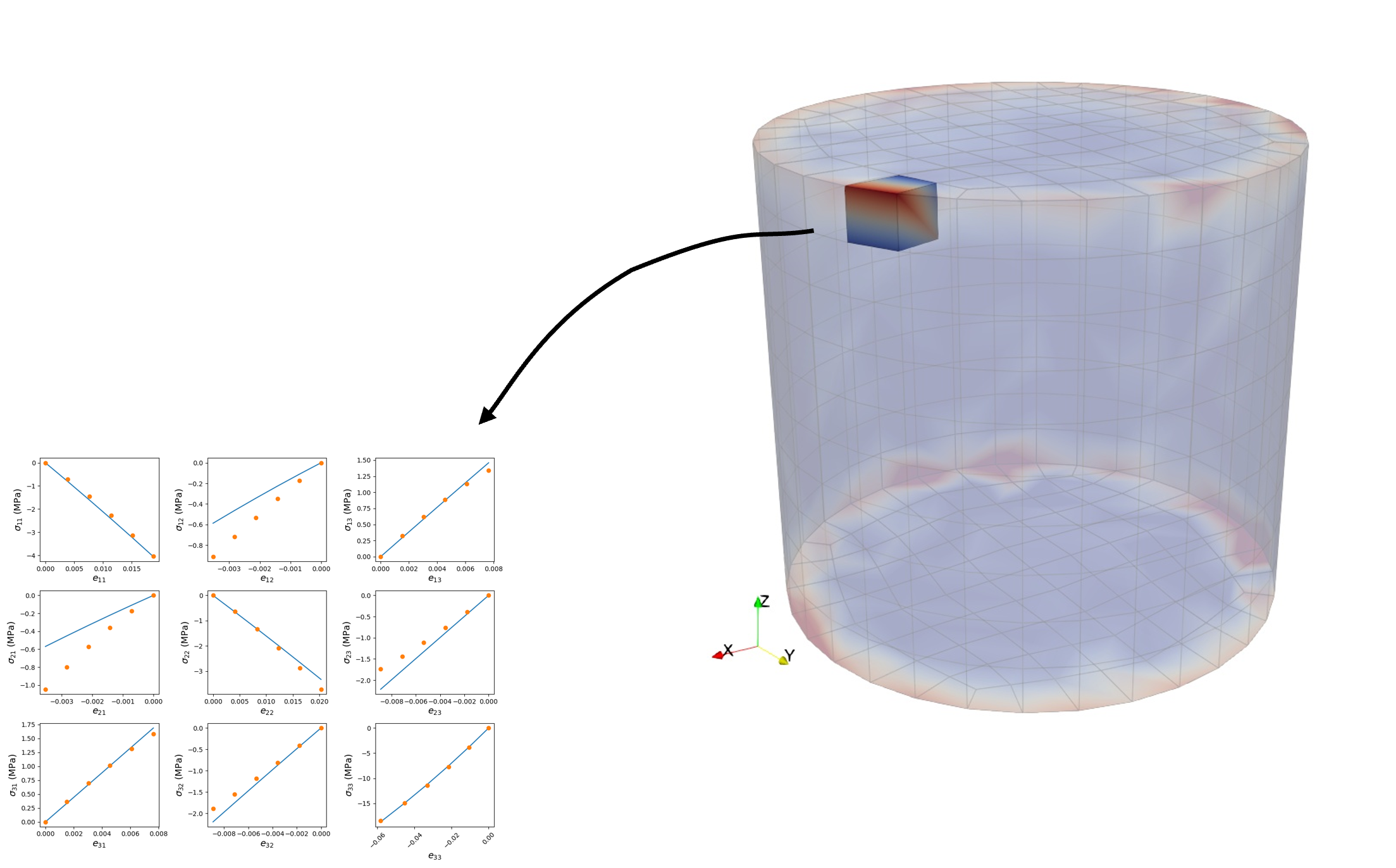 Fig. 4 Illustration of calibration method using homogenized stress and deformation quantities output by the Micromorphic Filter